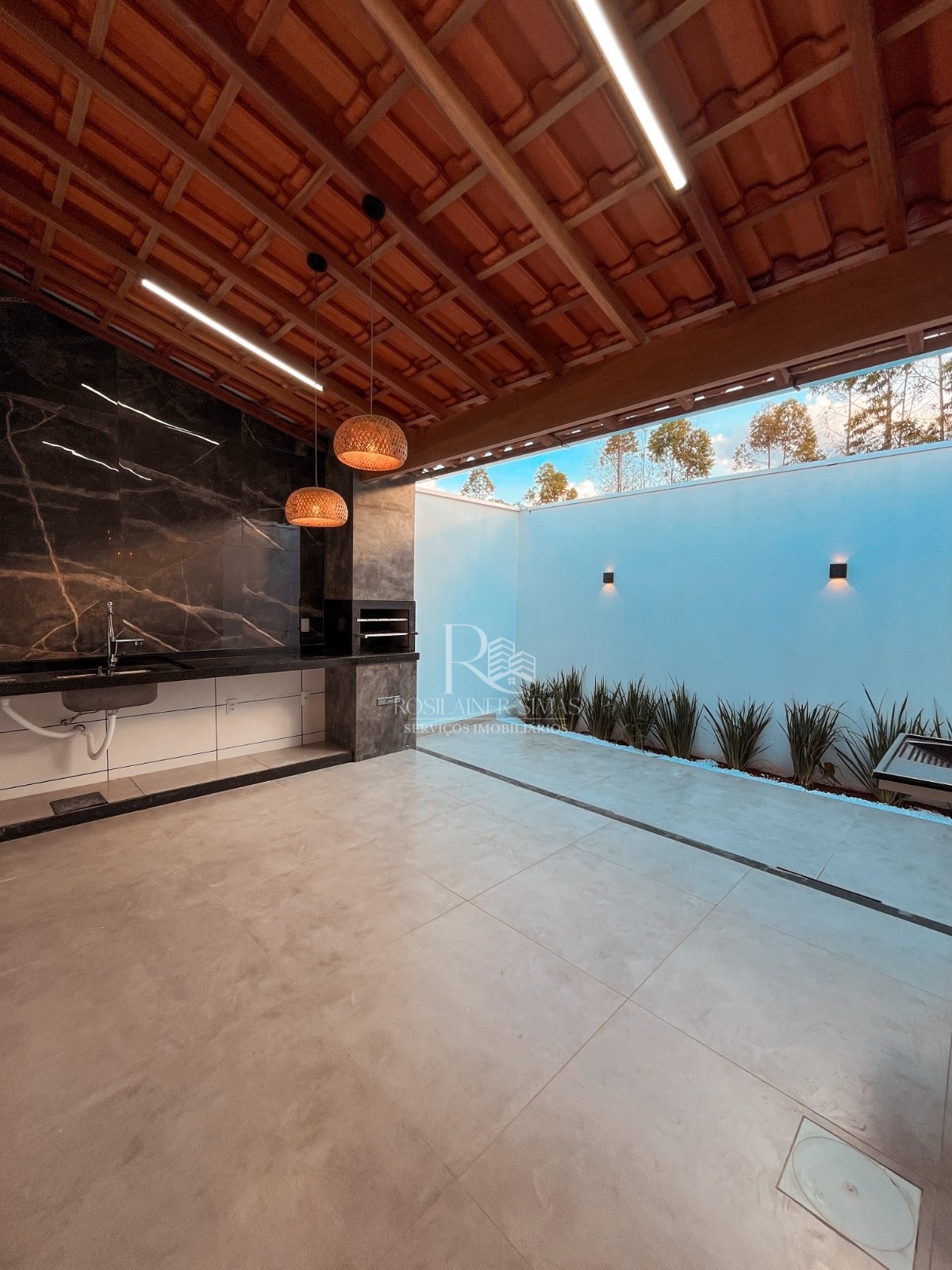 - Sala | Cozinha | Banheiro Social | 03 Quartos sendo 01 suíte | Área de Iluminação | Área Gourmet com Churrasqueira | Lavanderia | Garagem para 03 carros e 02 motos. |