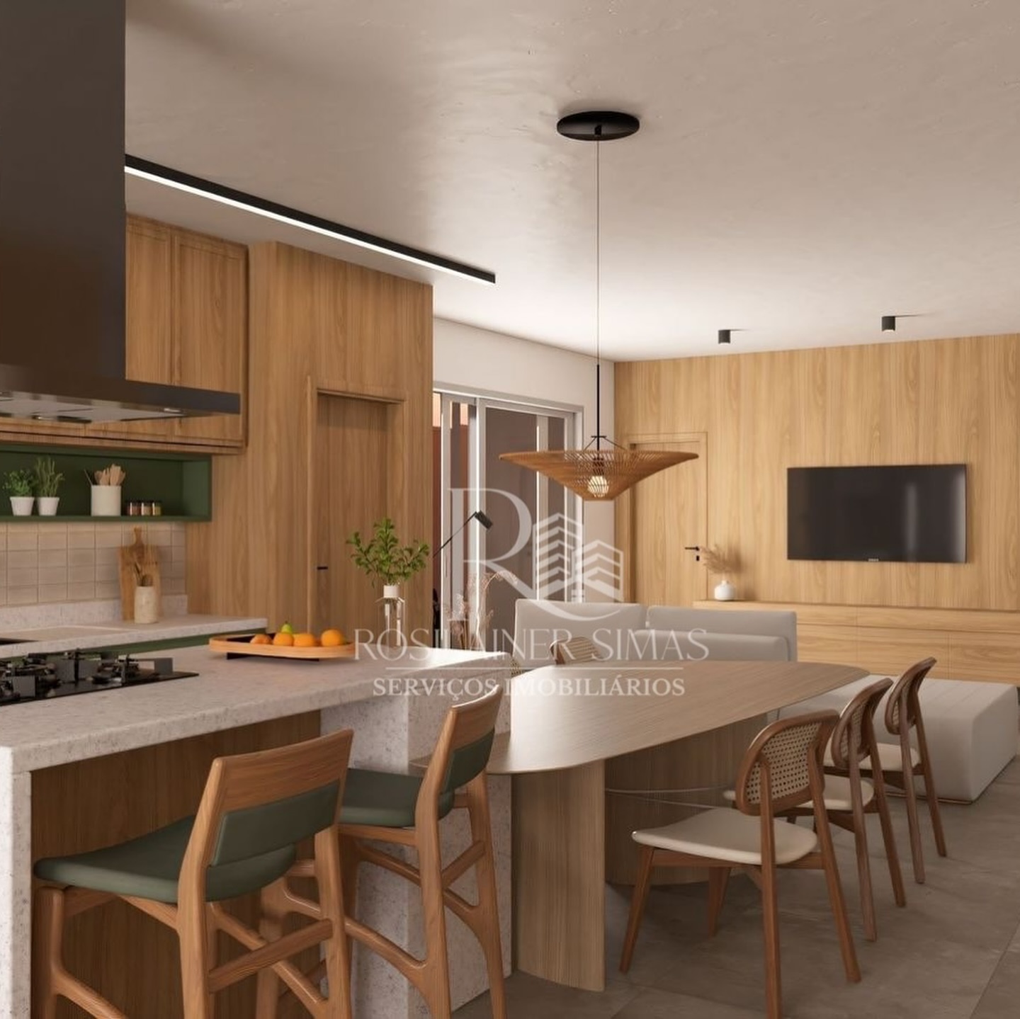 A área social é um convite à celebração, com a sala de estar e jantar elegantemente conectadas a uma cozinha gourmet com planejados e bancadas em granito Branco Prime. Cada detalhe foi pensado para otimizar seus momentos, do piso vinílico amadeirado nos quartos que proporciona conforto térmico, à água quente em todos os pontos com aquecedor a gás.